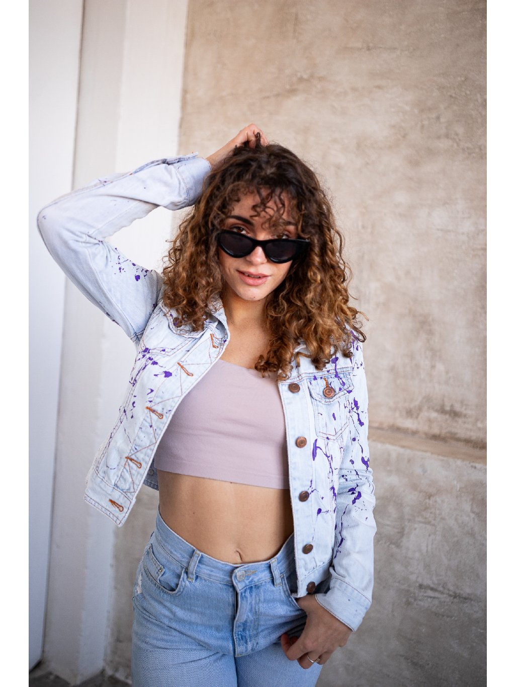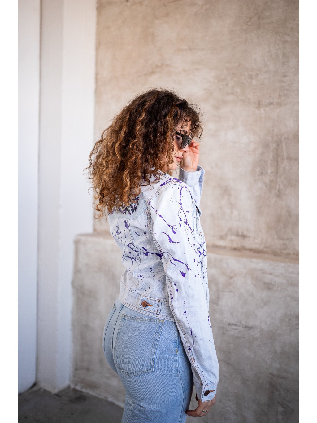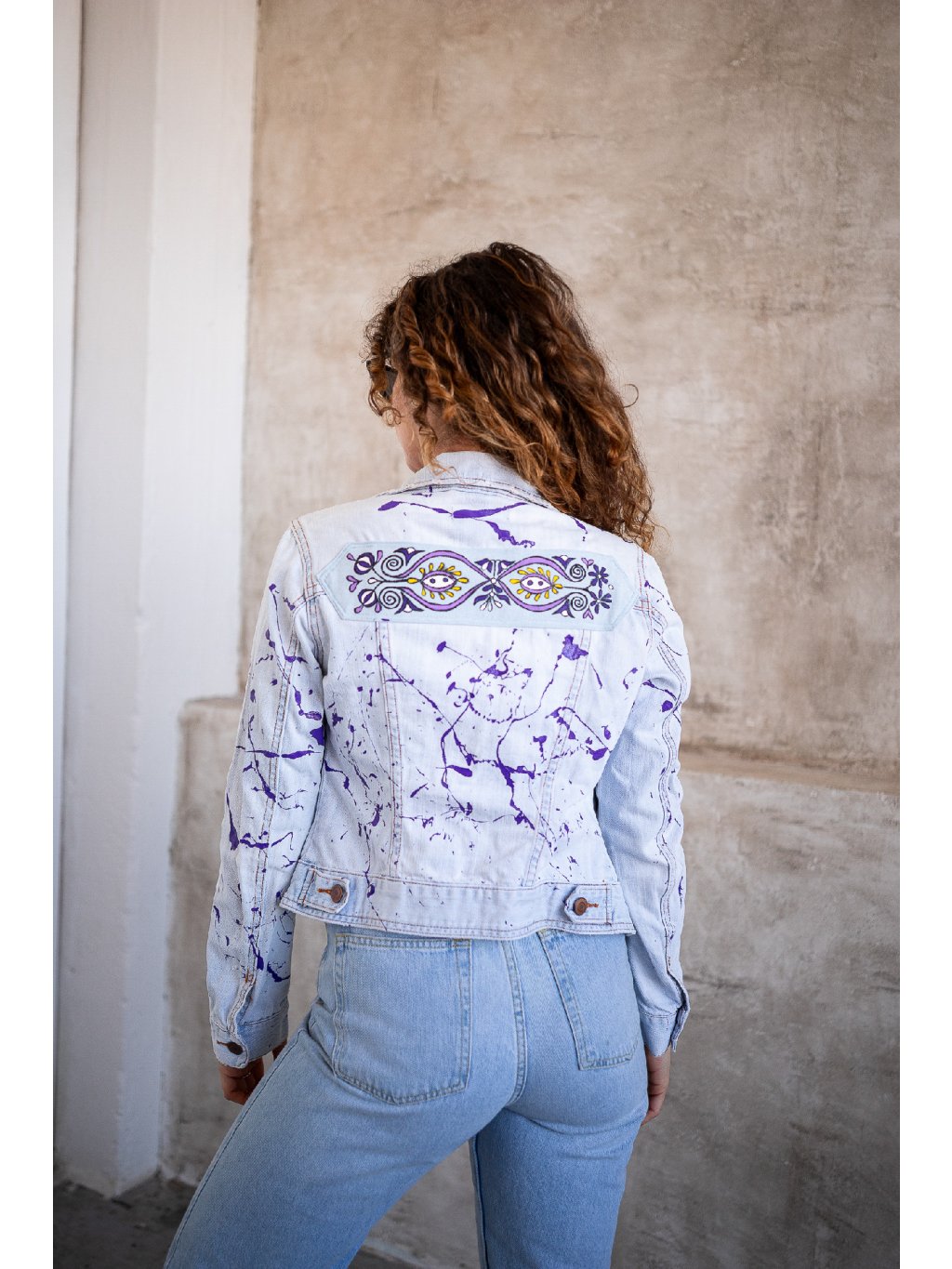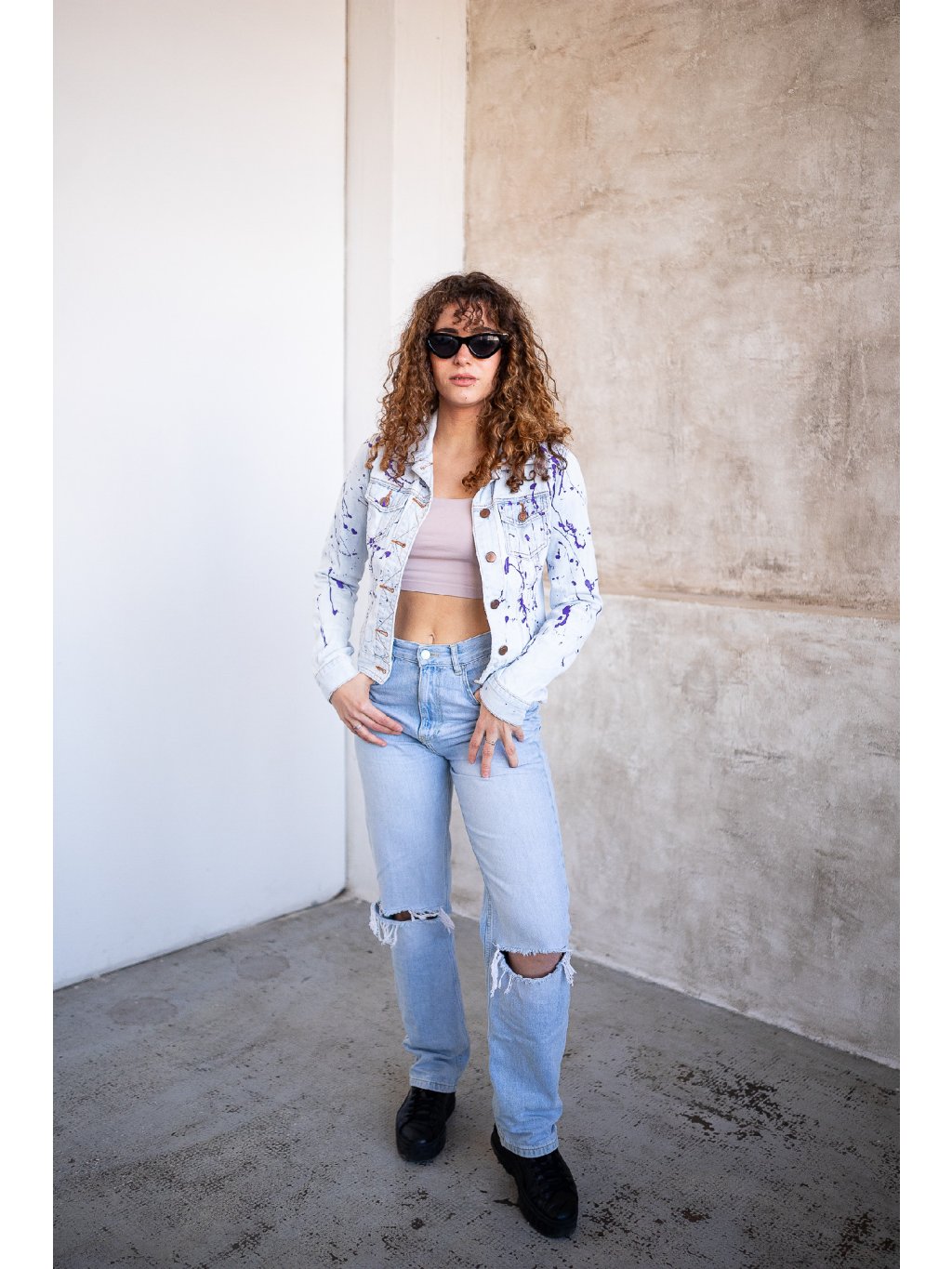 Světlá dámská džíska velikosti S zdobená barevným malováním.
